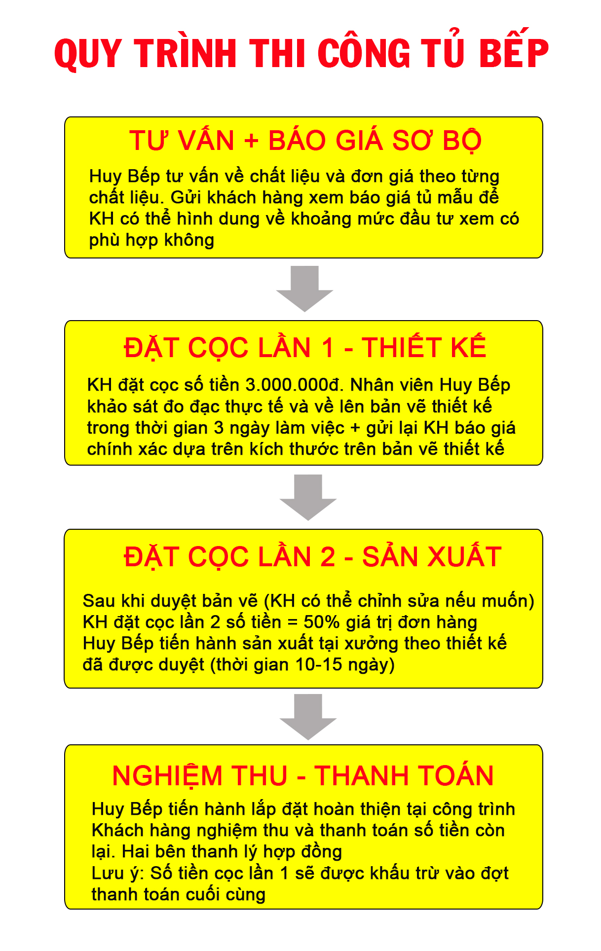 Trong đó phần thiết bị là phần có sự dao động nhiều nhất tùy vào khả năng tài chính của mỗi nhà. Hãy cùng huybep.vn tham khảo báo giá của 1 mẫu tủ bếp cơ bản sau đây nha:
