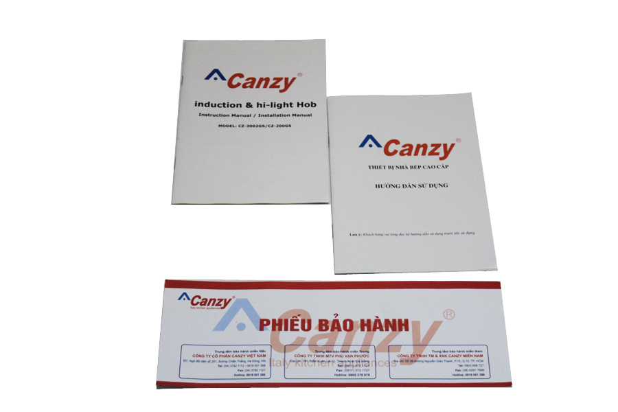 Hướng dẫn sử dụng tiếng Anh, tiếng Việt và phiếu bảo hành chính hãng Canzy 3 năm tại nhà