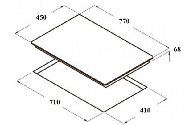 + Kích thước lỗ khoét đá: 710 x 410 mm
