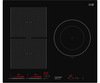 Bếp hỗn hợp 1 điện 2 vòng & 2 lò từ có chức năng booster.