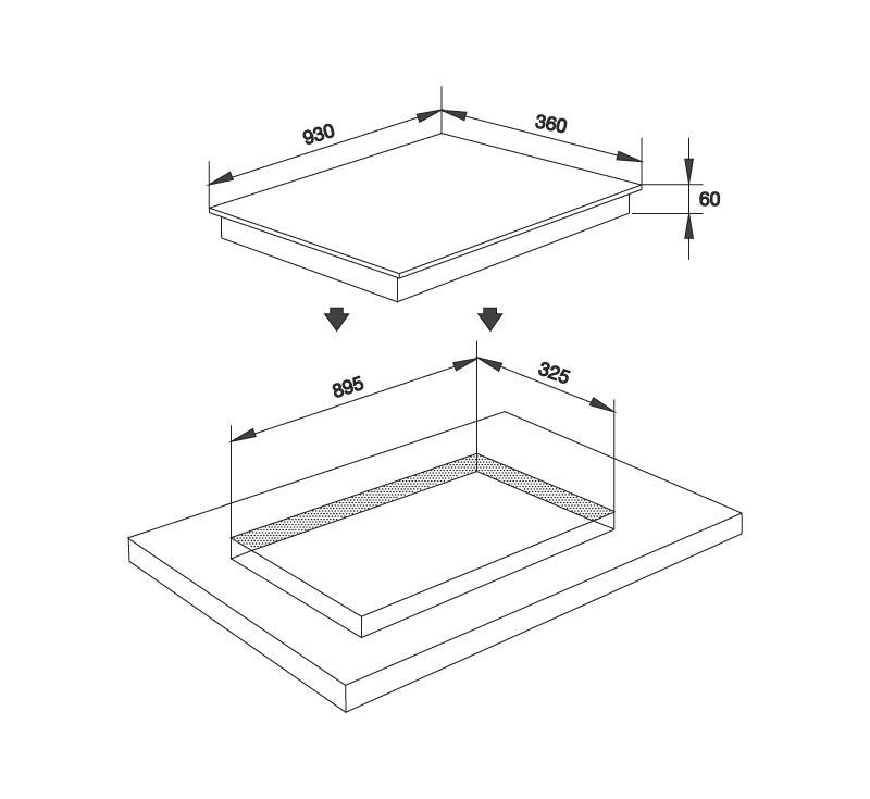 Kích thước bếp: W930 x D360 x H60mm