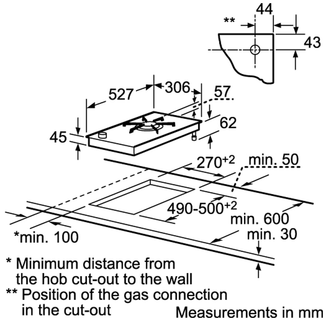 Kích thước cắt đá (HxWxD) 45 x 270 x 490-500 mm