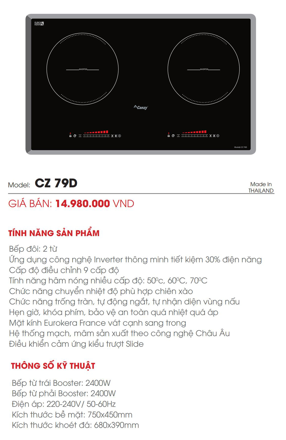 Kích thước lắp đặt bếp điện từ Canzy CZ 79DT