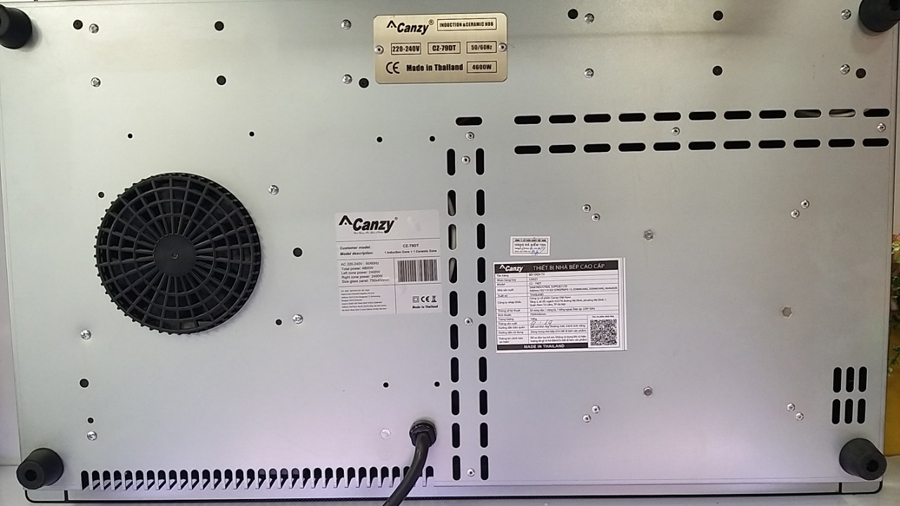 Bếp điện từ Canzy CZ 79DT Sử dụng 100% linh kiện nhập khẩu từ Đức và lắp ráp tại Thái Lan, xuất xứ sản phẩm được dập nổi rõ ràng ngay trên mặt bếp, Quý khách có thể tự kiểm tra xuất xứ cũng như nơi sản xuất bằng các phần mềm quét mã vạch chuyên dụng trên điện thoại smartphone