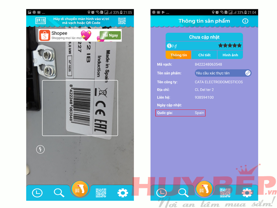 Check xuất xứ bếp bằng ứng dụng Barcode việt
