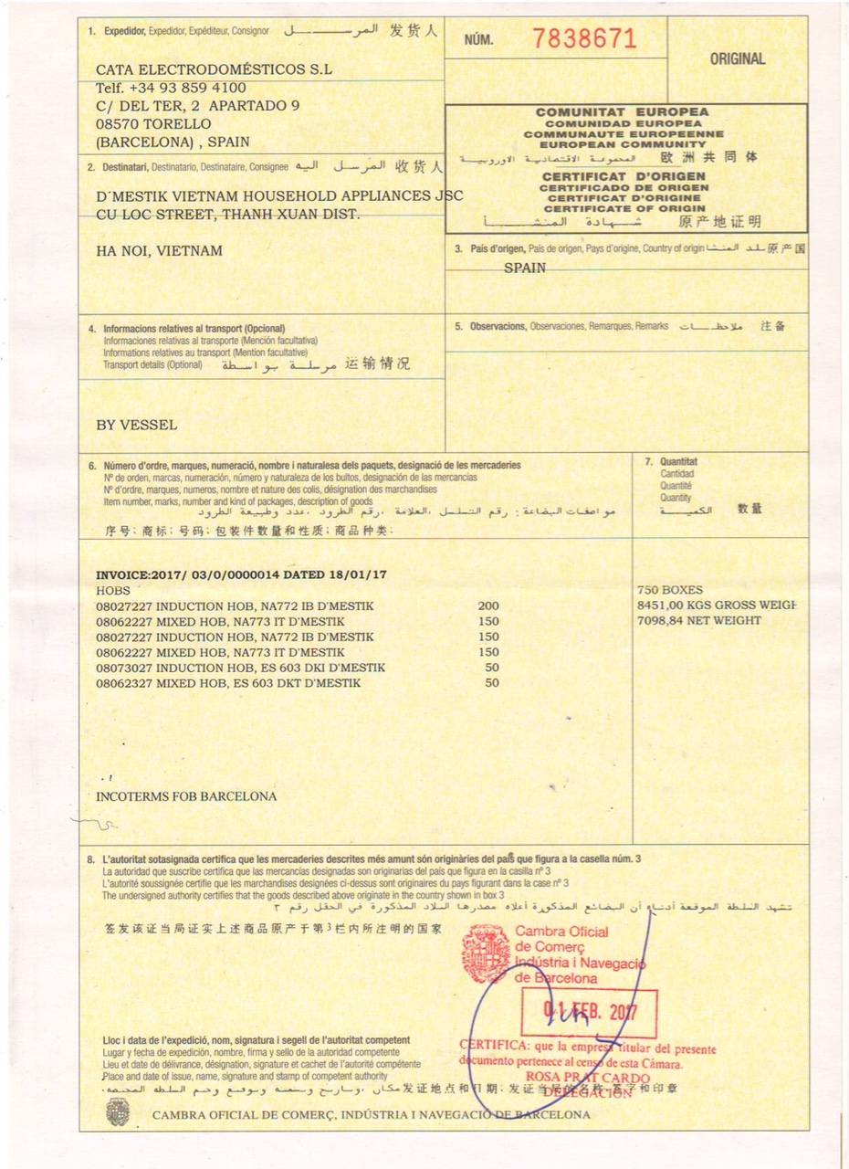 Giấy chứng nhận xuất xứ (C/O) của sản phẩm