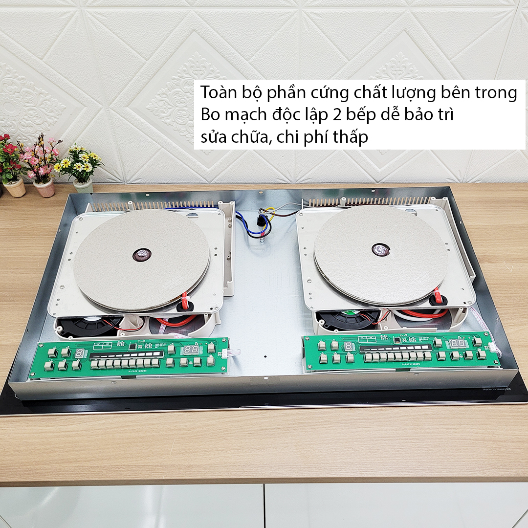 - 2 Quạt tản nhiệt lồng sóc êm ái, hoạt động độc lập, làm tăng độ bền cho bếp