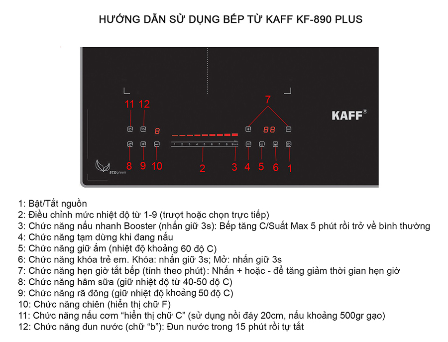 THÔNG SỐ KĨ THUẬT BẾP TỪ KAFF KF-890PLUS