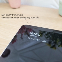 - Mặt kính Vitro Ceramic siêu sáng bóng, chịu lực chịu nhiệt tới 800 độ C, chống trầy xước tốt.