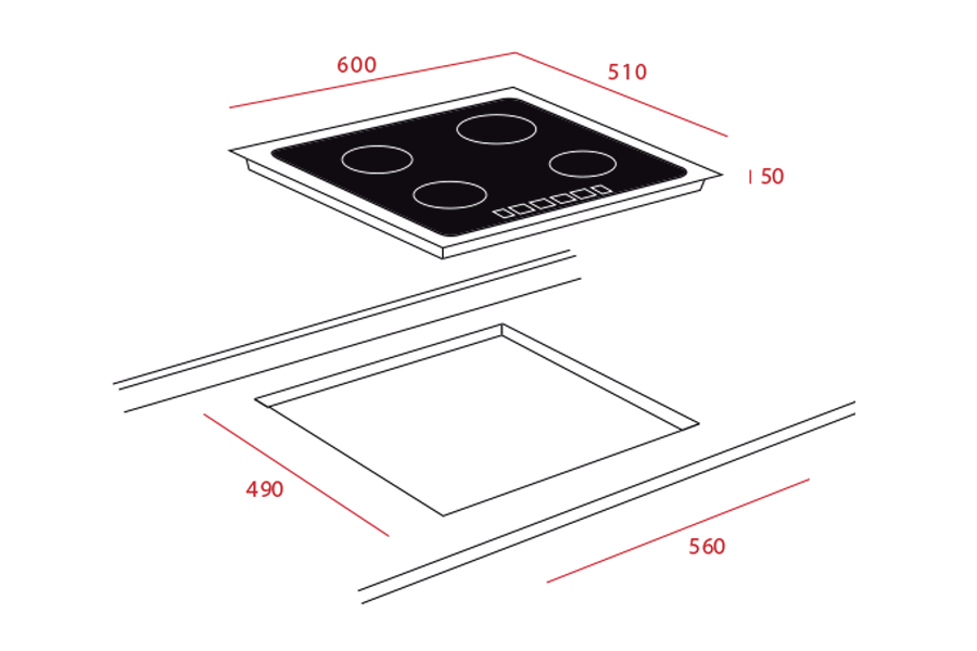 - 01 bếp có vòng nhiệt Ø 145mm (1.8 kW),
