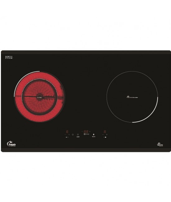 Dòng bếp hỗn hợp TOM 02IH-G7 cho phép sử dụng kết hợp vùng nấu điện tiện lợi trong việc sử dụng các loại nồi (không kén nồi) để nấu những món ăn ưa thích (kho tộ, nướng…);