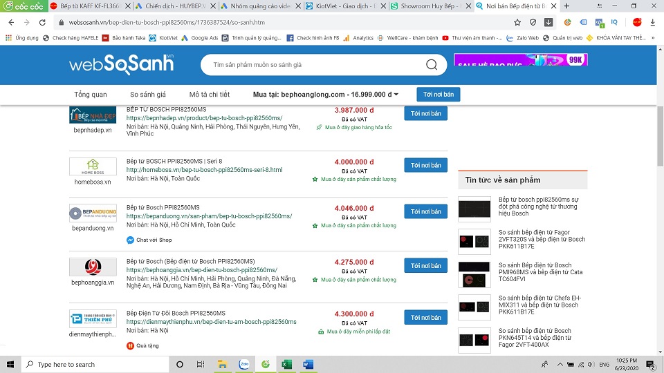 Điều đầu tiên Huy muốn nói khi các bạn đi mua bếp từ và thiết bị nhà bếp nói chung, đó là các bạn sẽ không bao giờ mua được sản phẩm với giá thấp nhất của websosanh, vì websosanh là 1 cái bãi rác khổng lồ của những kẻ làm ăn chộp giật và lươn lẹo. Có tới quá nửa website xuất hiện trên websosanh là những nơi đăng giá ảo, 1 sản phẩm có giá hàng chục triệu nhưng ở trên websosanh nó chỉ có giá vài ba triệu đồng. Và tất nhiên những giá đó là giá không thực tế. Nó làm lũng đoạn thị trường và khiến người mua hàng bị lạc vào ma trận với tâm ly hoang mang. Lý do vì sao lại như vậy thì Huy sẽ có 1 video khác nói kĩ hơn về vấn đề này, các bạn nhớ đăng kí kênh để theo dõi.