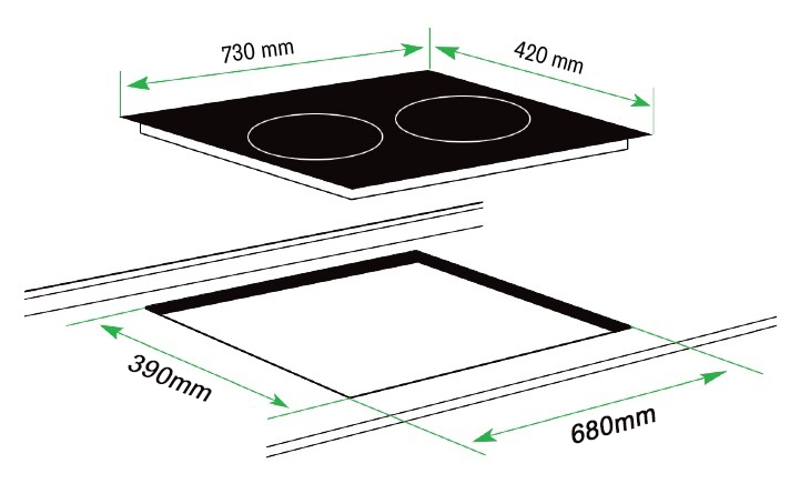 Kích thước cắt đá 680 x 390mm là kích thước phổ biến trên bếp từ Malaysia
