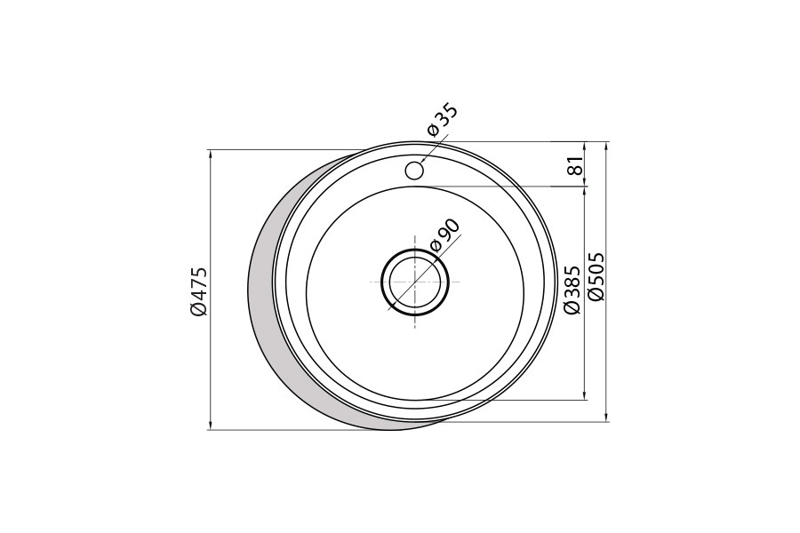 Chất liệu: thép không rỉ Lắp nổi Hệ thống chống tràn Đáy chống ồn Kích thước (mm): Ø 475 x 180 |