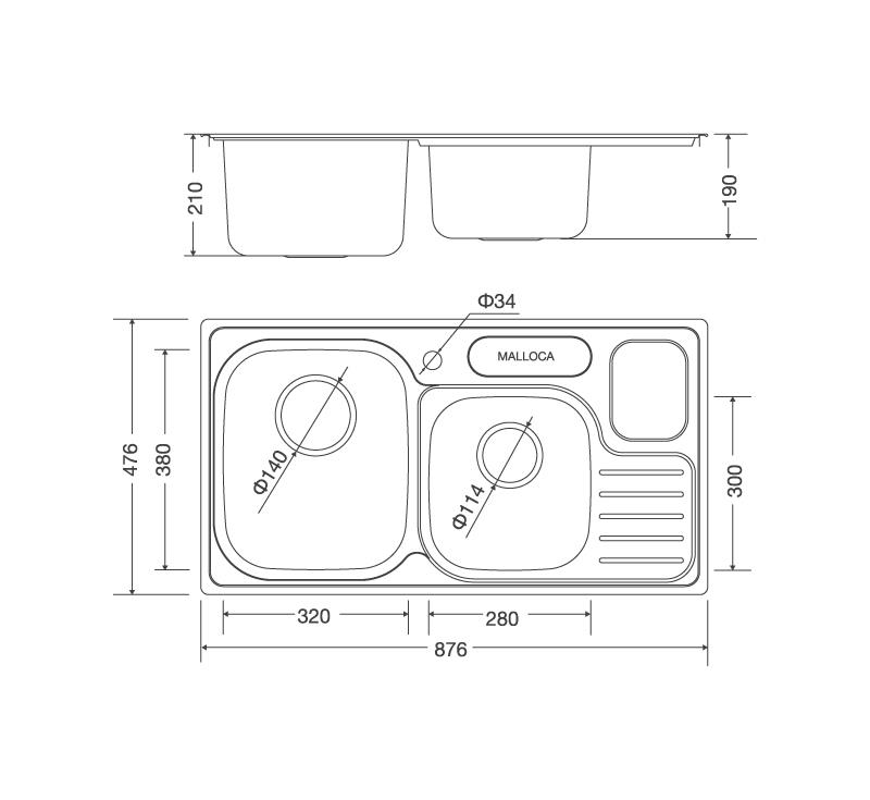Chiều sâu lý tưởng từ 200 mm trở lên giúp nước không bị bắn lên trong quá trình dọn rửa.
