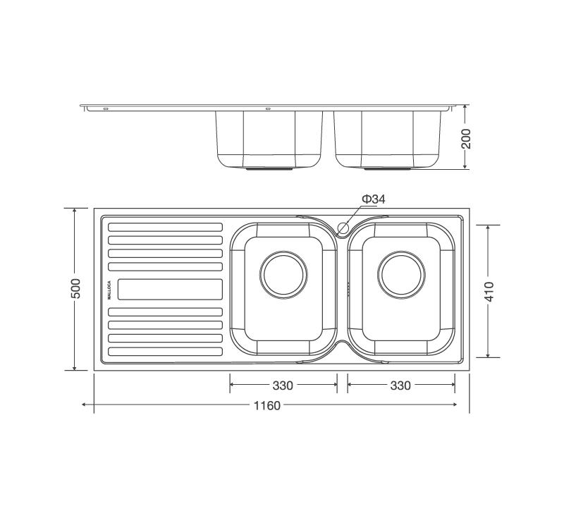 Chiều sâu lý tưởng từ 200 mm trở lên giúp nước không bị bắn lên trong quá trình dọn rửa.