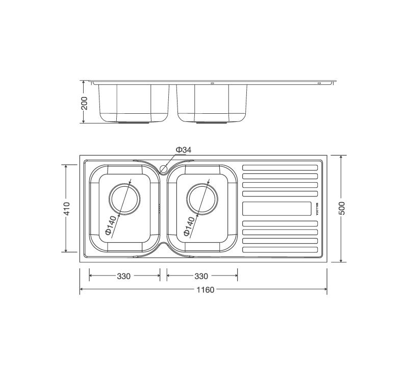 Kích thước lỗ đá: W1138 x D478mm