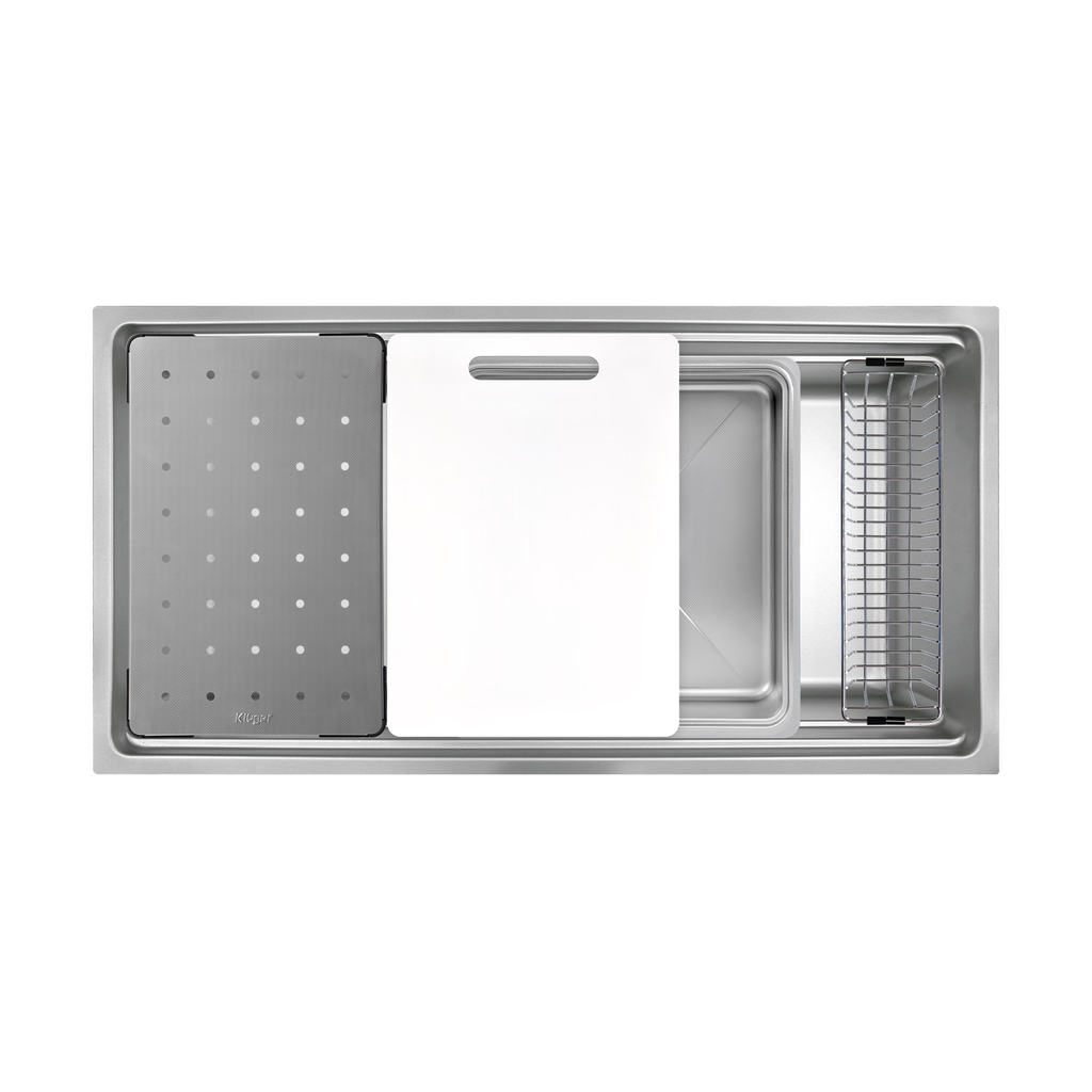 - Bộ sản phẩm bao gồm: 01 chậu rửa + 01 bát rác + 01 Siphon + 01 giỏ inox + 01 thớt nhựa + 01 thớt inox có lỗ + 01 chậu rửa nhỏ.