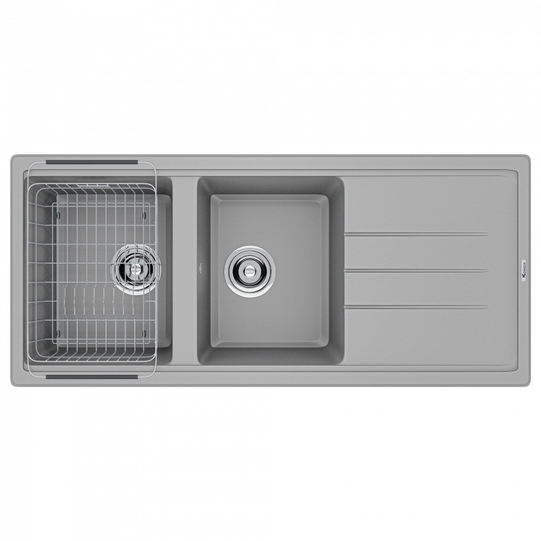 Chậu rửa bát Granite Sink Phoenix 1160 – Grey đặc biệt được sản xuất dành cho gian bếp có không gian rộng. Sản phẩm có một bàn chờ gắn liền giúp bạn có thêm không gian sắp xếp đồ bếp và rãnh thoát nước thông minh trên bàn chờ giữ cho căn bếp luôn khô thoáng tiện lợi.