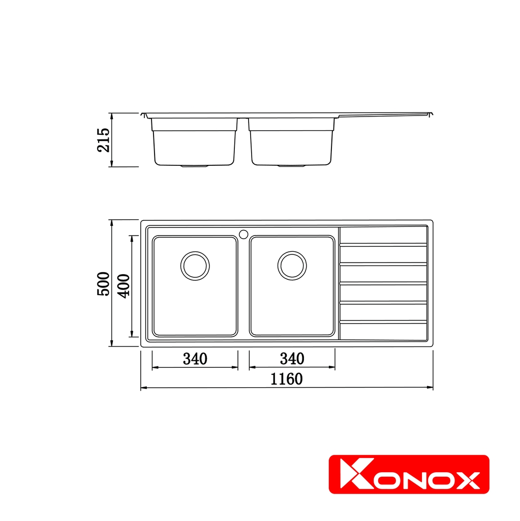 Chậu rửa Konox Premium KS11650 2B - Bàn phải