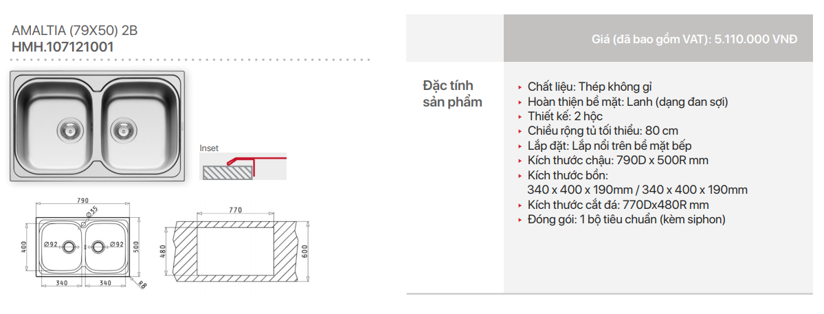- Lắp đặt: Lắp nổi trên bề mặt bếp