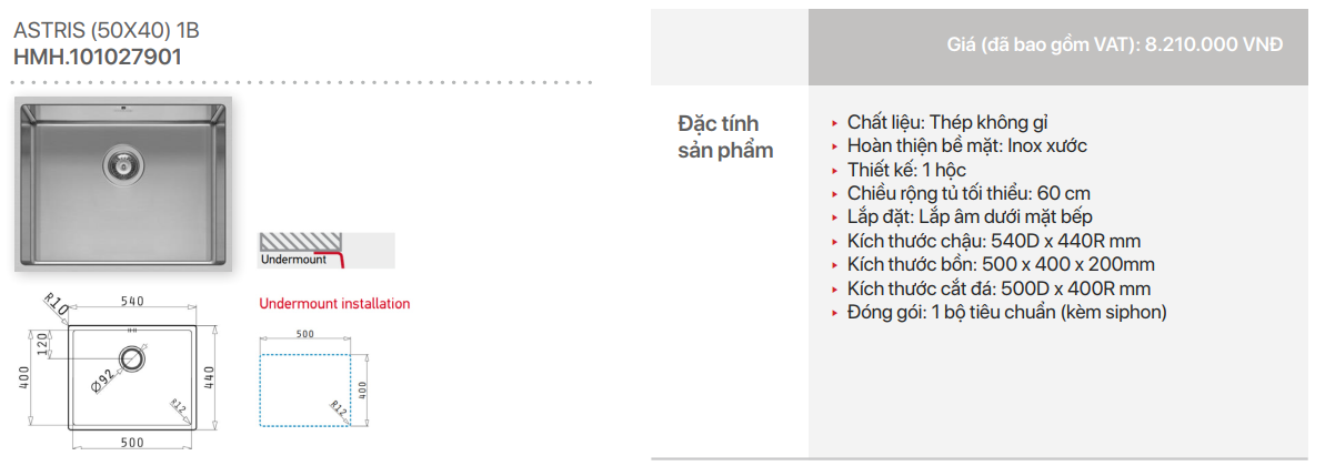 - Lắp đặt: Lắp âm dưới mặt bếp