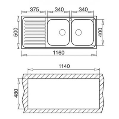 Chậu hố nhỏ (R/C/S) : 340 x 400 x 200mm.