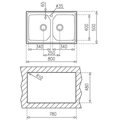 Kích thước hố chậu (R/C/S) 340 x 400 x 190 mm