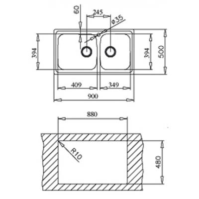 Hố chậu (WxHxD), 349 x 394 x 200