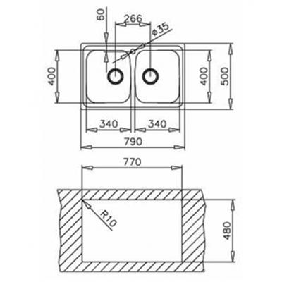 Kích thước hố chậu (R/C/S) 340 x 400 x 170 mm