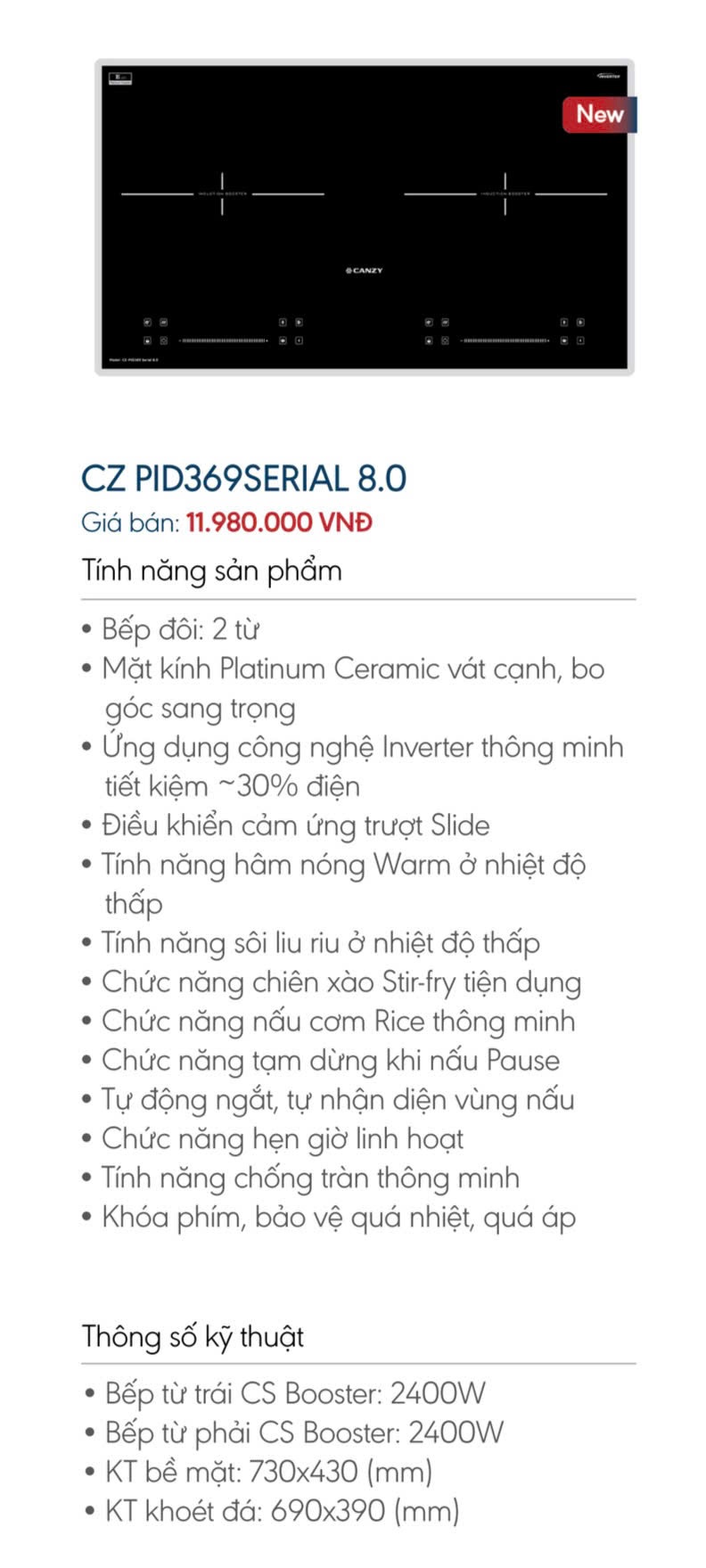 1. Bếp từ Canzy CZ-PID369 Serial 8.0 - Bảo hành 3 năm