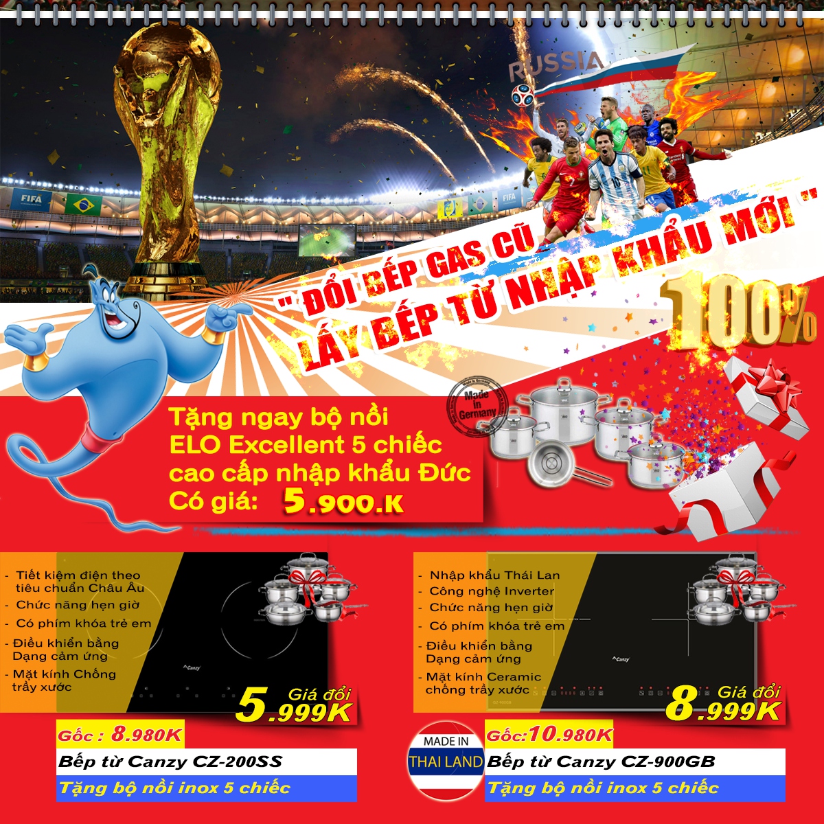 | Bếp từ Canzy CZ-200SS | 8.980.000 | 5999000 | Thái Lan | Bộ nồi inox cao cấp 5 chiếc |