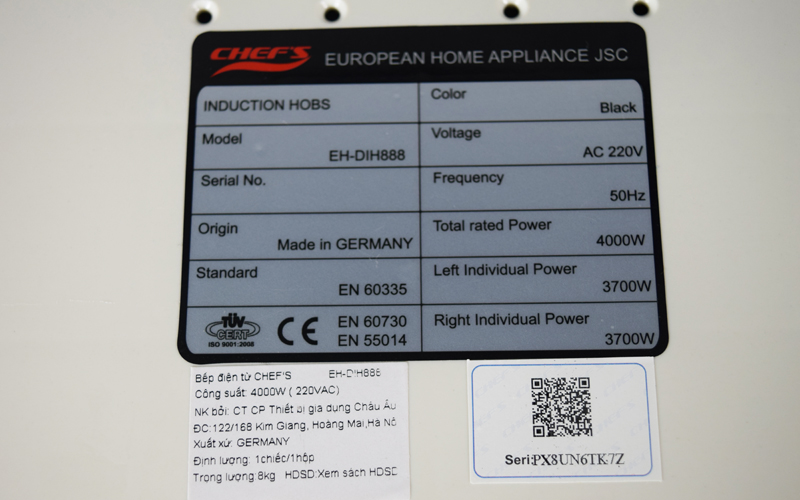 ĐÁNH GIÁ CHẤT LƯỢNG SẢN PHẨM BẾP TỪ CHEFS EH-DIH888