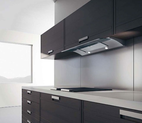 + Dạng 1: Không gian bếp khép kín không có đường thoát, tủ bếp gắn tường. Dạng thiết kế này Faster cho ra đời 2 dòng sản phẩm có hút khử trực tiếp là máy hút mùi cổ điển Faster, và máy hút mùi âm tủ Faster.