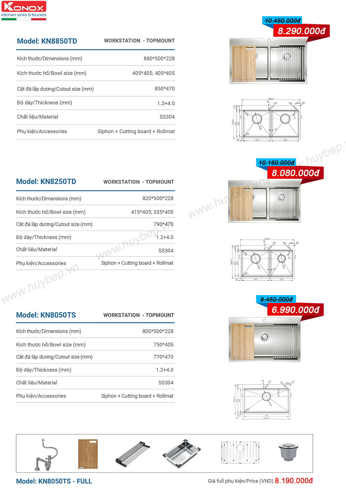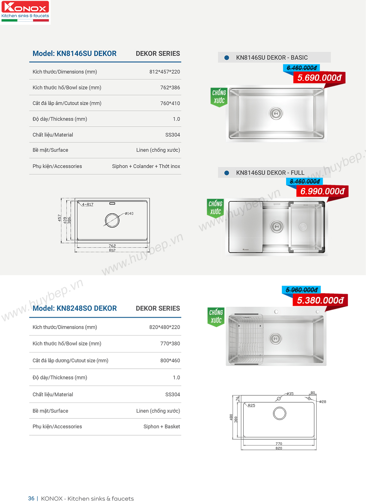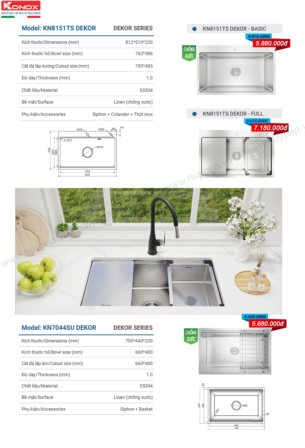 Bộ sưu tập chậu, vòi rửa Konox cao cấp