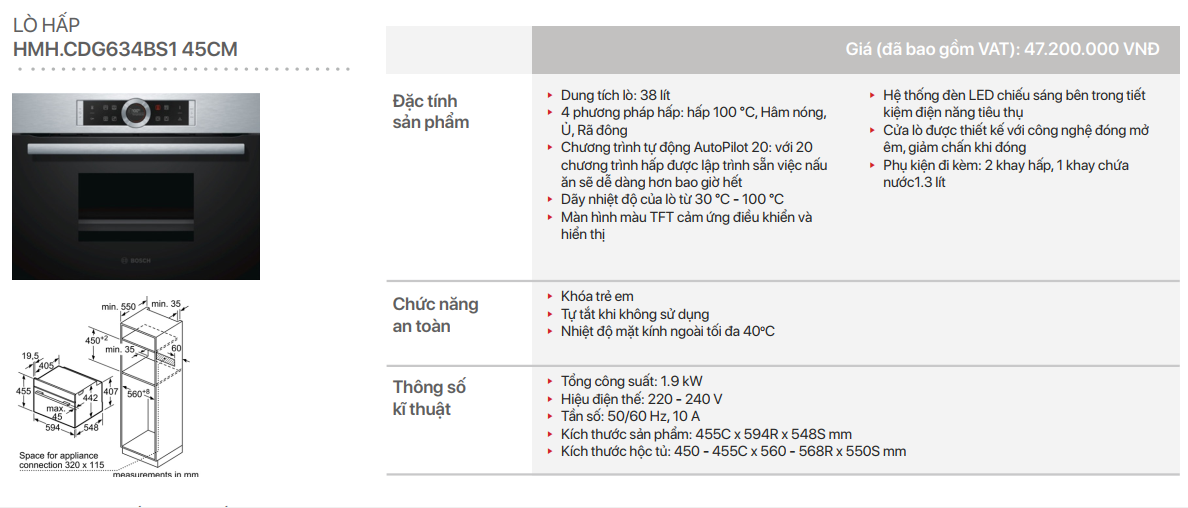 - Dung tích lò: 38 lít
