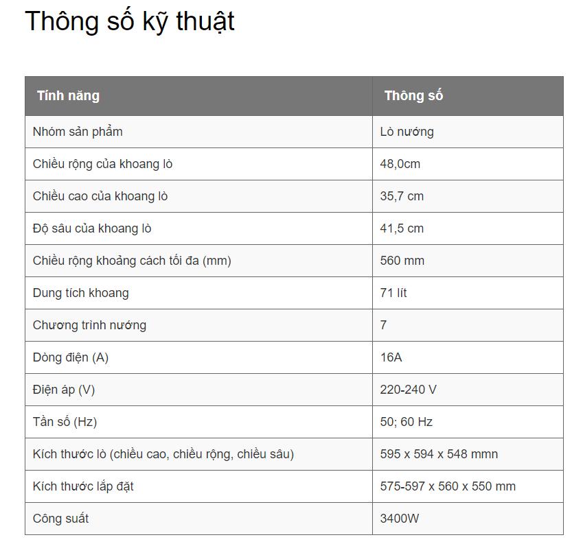 - Với 7 chức năng nướng: Hệ thống nướng, 3D chuyên nghiệp, Nhiệt trên và dưới, Nướng với không khí nóng, Nướng diện rộng, Chức năng Pizza, Nhiệt độ thấp, Nhiệt trên và dưới mềm