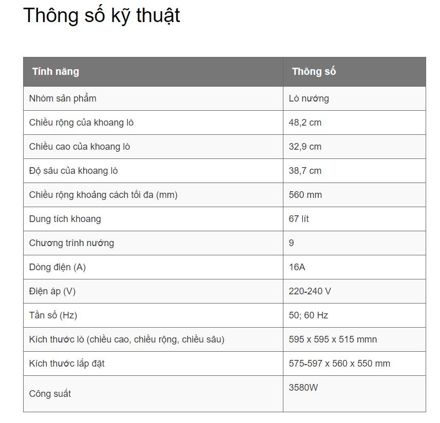 Chiếu sáng trong nội thất toàn bộ khoang lò nướng một cách hiệu quả.