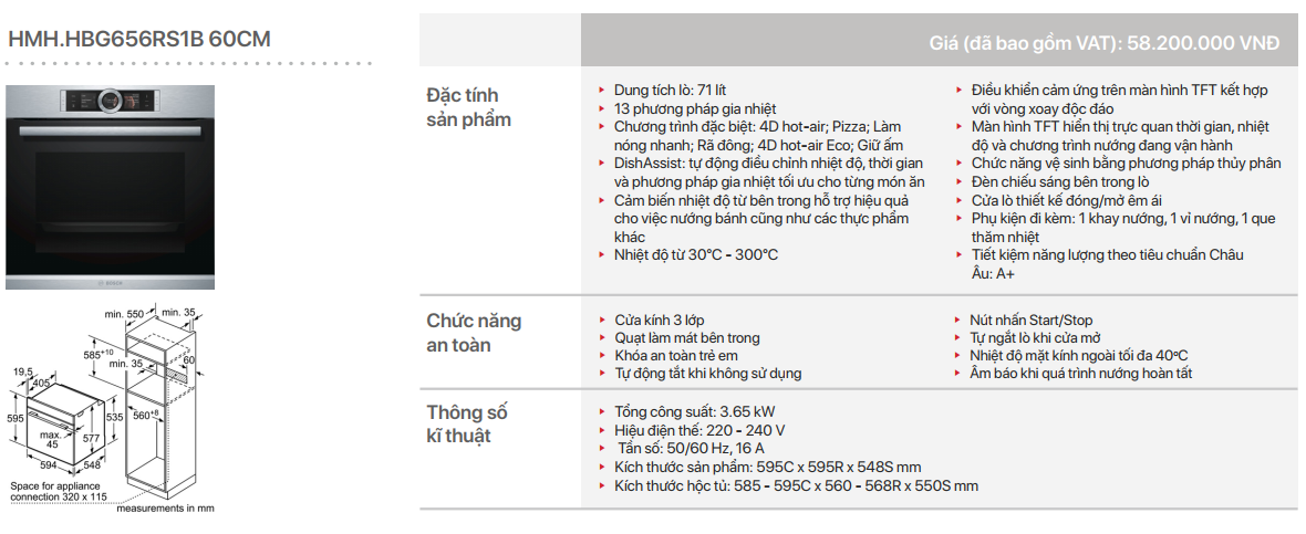 - Kích thước hộc tủ: 585 - 595C x 560 - 568R x 550S mm