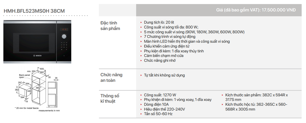 - Kích thước sản phẩm: 382C x 594R x 317S mm