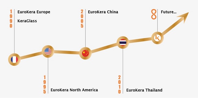 EuroKera là một tập đoàn tiên phong trong lĩnh vực sản xuất kính Ceramic với 2 địa chỉ sản xuất tại Pháp vào năm 1990, hơn 25 năm tham gia vào thị trường quốc tế EuroKera hiện nay đã mở rộng sản xuất tại 4 quốc gia khác nhau đó là Pháp, Mỹ, Trung Quốc, Thái Lan. Tập trung vào việc nghiên cứu và sản xuất các sản phẩm trong ngành công nghệ kính, hiện nay thương hiệu này đang là người dẫn đầu cung cấp sản phẩm cho ngành thiết bị gia dụng trên khắp các châu lục.