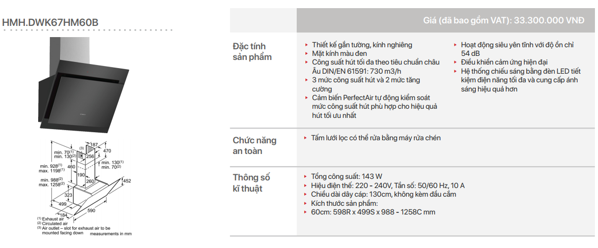 - Thiết kế gắn tường, kính nghiêng