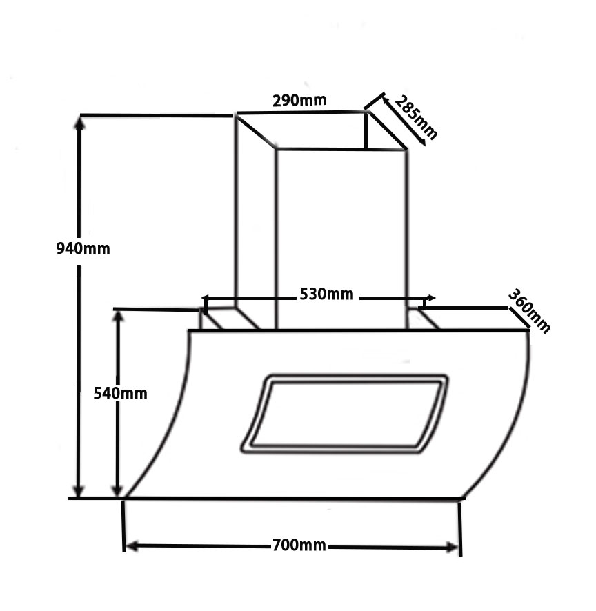 Kích thước hút mùi (dài x sâu x cao): 700 x 500 x 560 mm