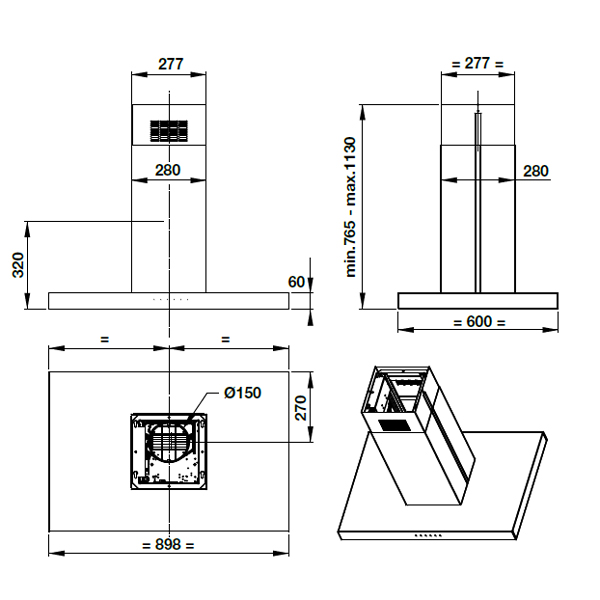 THÔNG SỐ KỸ THUẬT CỦA MÁY HÚT MÙI ĐẢO HAFELE HH-IS90B 539.81.715