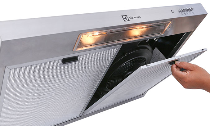 Máy tích hợp sẵn 2 miếng lọc dạng lưới, cấu tạo bằng nhôm và theo Electrolux, bộ lọc nhôm này được thiết kế với 5 lớp không gỉ giúp loại sạch dầu mỡ phát tán ra trong quá trình chế biến. Bên trong miếng lọc này còn có bộ lọc than hoạt tính giúp hút mùi, khử độc cho không khí giúp không gian nhà bếp sạch sẽ và thoáng đãng hơn.