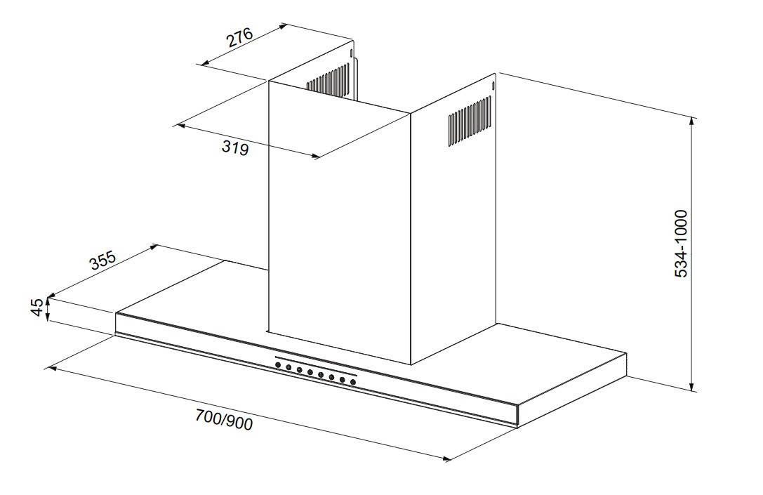 Kích thước sản phẩm: 700/900R x 360S x 528-1018C mm