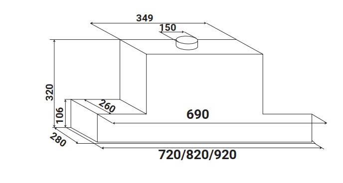 • Ống thoát D150 mm và 2m ống mềm kèm theo