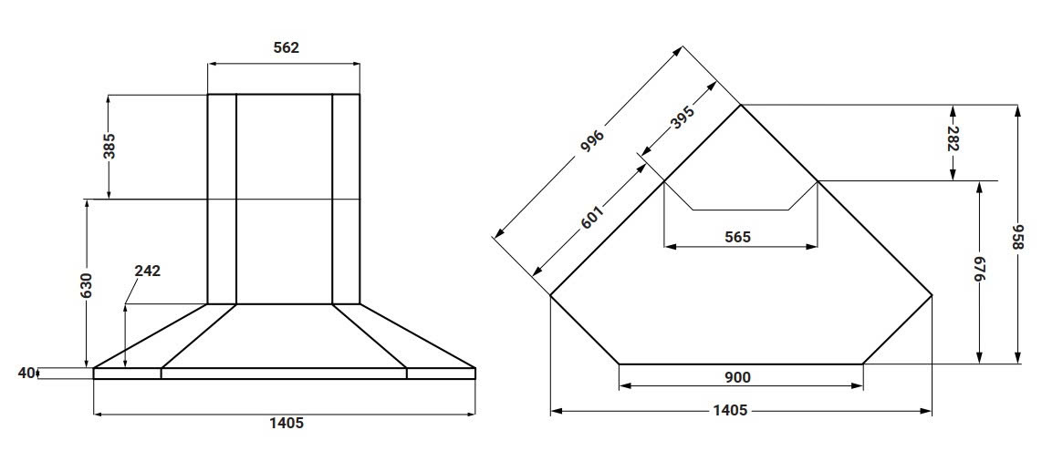 • Ống thoát hơi D150 mm và 2 m ống mềm kèm theo
