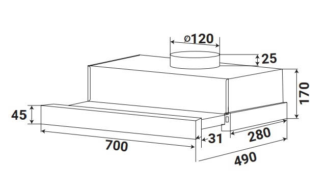 • Ống thoát hơi D120 mm và ống mềm kèm theo