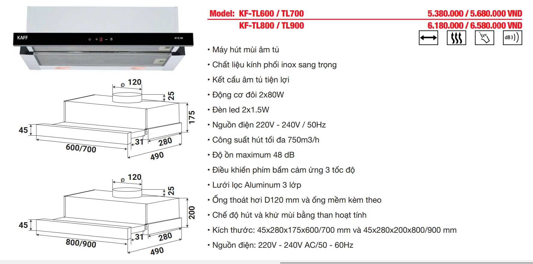 • Nguồn điện: 220V - 240V AC/50 - 60Hz